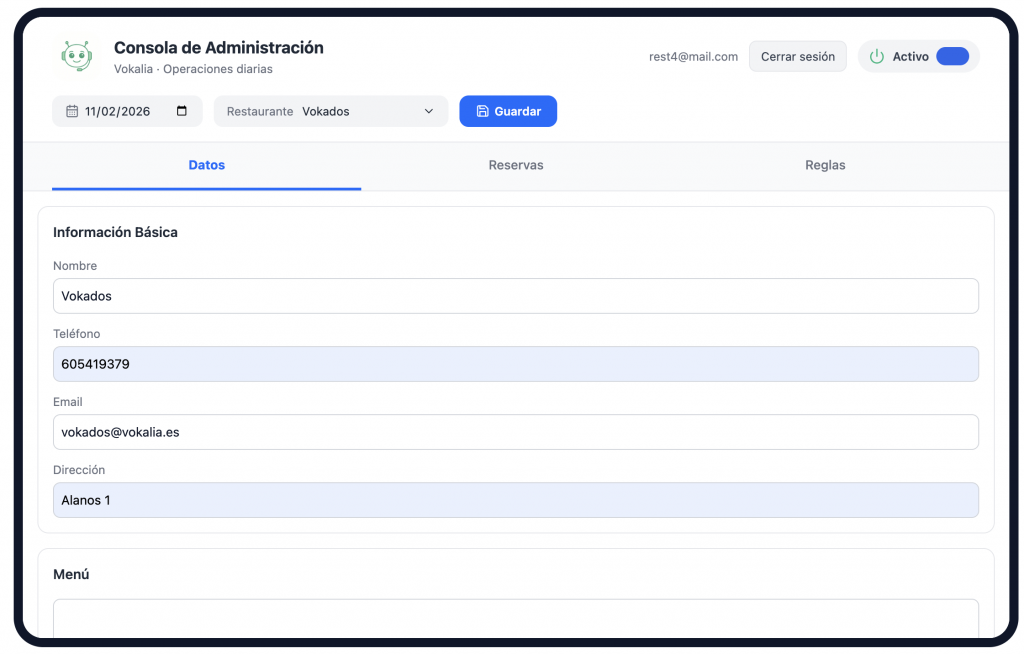 Vokalia es un asistente por voz o chat que atiende automáticamente las reservas de tu negocio, como si fuera una persona de tu equipo. Puede responder llamadas, mensajes o chats, recoger los datos necesarios y confirmar la reserva al instante